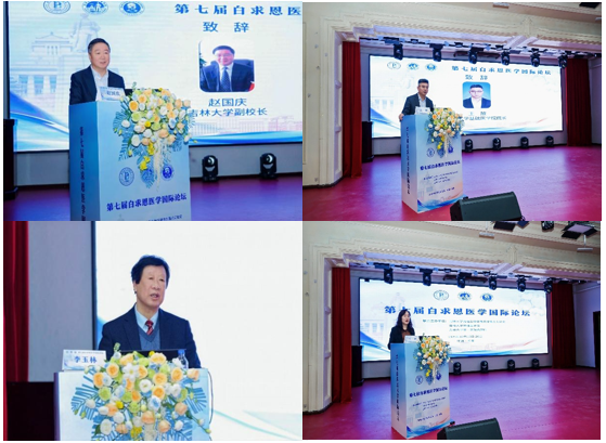 论坛由吉林大学白求恩医学部副学部长、病理生物学教育部重点实验室主任辛颖教授主持。王放院长代表学院欢迎各位领导和学者的莅临,学院从人才培养、学科建设等方面给予全力支持,并预祝论坛取得圆满成功。病理生物学教育部重点实验室名誉主任李玉林教授回顾了实验室始建至今的发展历程以及在干细胞与再生医学、肿瘤发病机制研究等领域取得的标志性成果;“白求恩医学国际论坛”迄今为止已成功举办七届,成为实验室分享最新研究成果、加强与国内外顶尖科研机构合作的桥梁和纽带。赵国庆副校长代表学校向论坛的召开表示祝贺,对长期以来支持吉林大学医学事业发展的专家学者表示衷心的感谢,并希望以此次论坛为契机,继承和弘扬白求恩精神,以科学为桥梁,以友谊为纽带,在基础研究、临床转化、跨学科整合等前沿领域携手打造长期、稳定、互利共赢的合作关系。