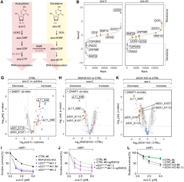 图1:RNF25通过泛素化eS31发挥抵抗阿扎胞苷细胞毒性的保护作用