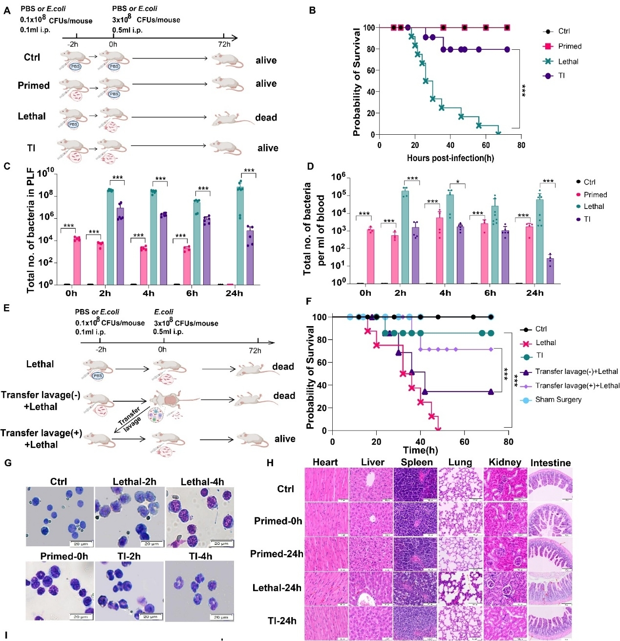 研究发现,低剂量大肠杆菌预刺激可显著提高小鼠对后续致死性感染的抵抗能力,同时腹腔灌洗液和外周血中的细菌负荷明显下降,多器官损伤得到有效缓解。
