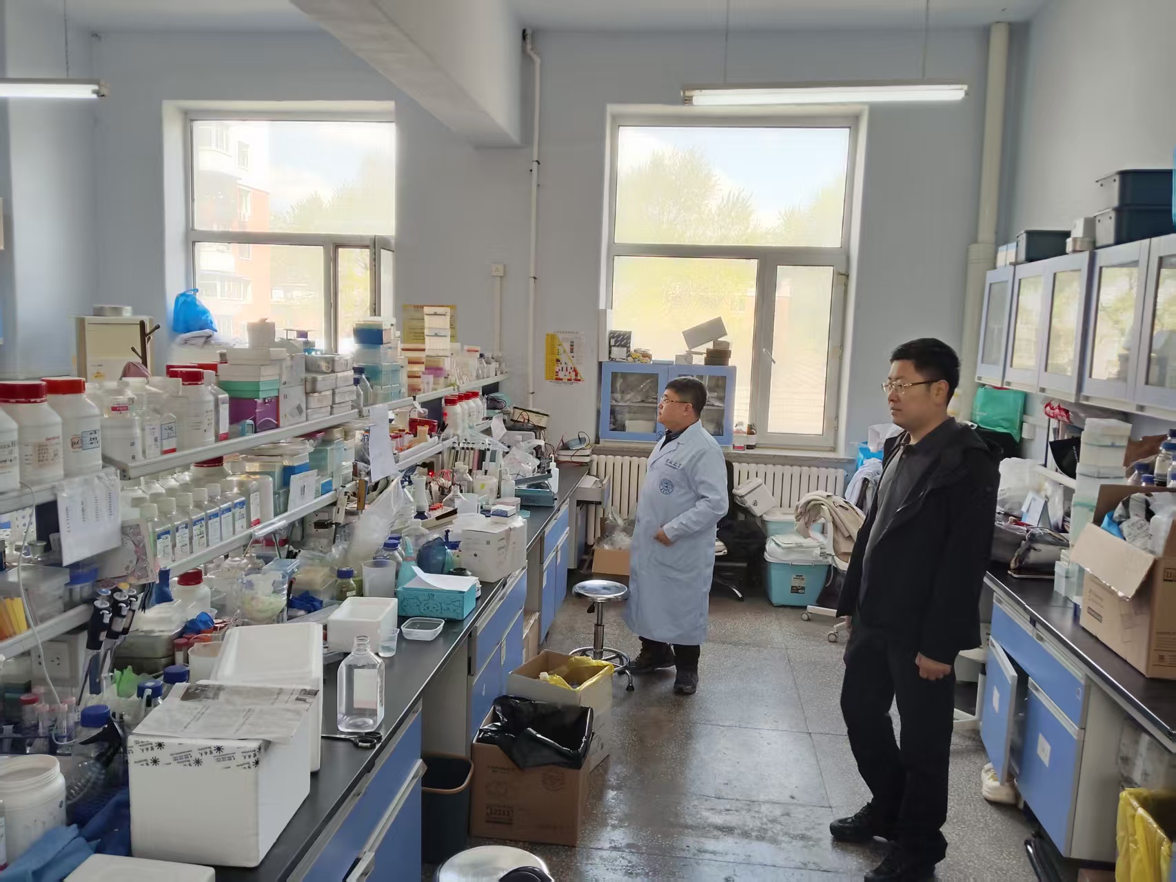 本次检查主要针对学院科研实验室、实验动物中心、基础医学教学实验中心等场所进行了实地踏查,重点对危化品的分类、储存及使用情况,高温高压仪器设备使用情况,水电气使用情况,消防器材配备情况,消防安全疏散通道安全情况,实验废弃物处置情况等进行逐一检查,对检查发现的隐患和问题进行现场反馈。